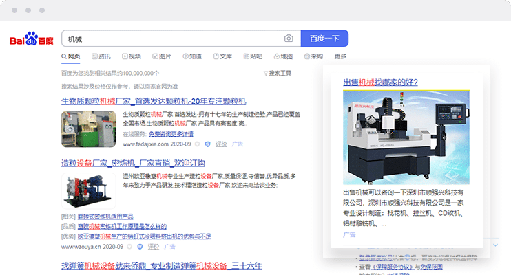 通过通用词精准匹配,展现在PC网页右侧的图文品牌展示类推广产品